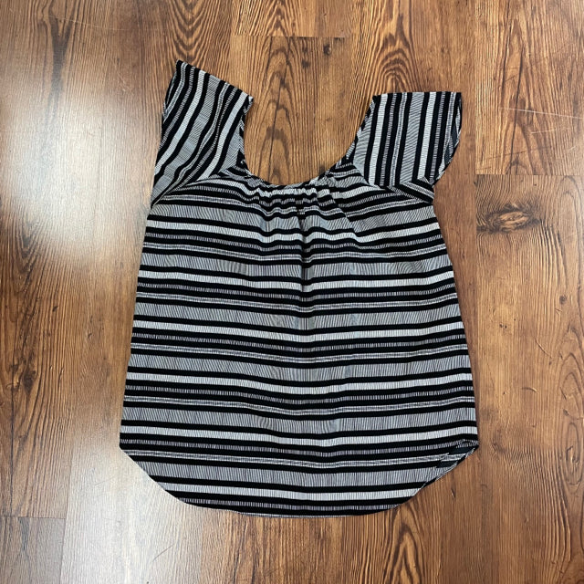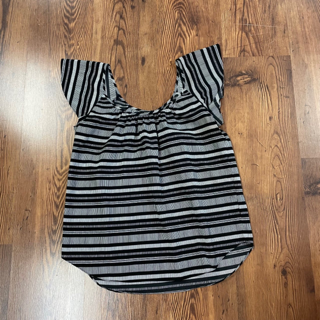 W) black w/ white stripes, SS flutter sleeve, scoop