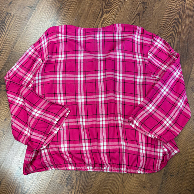 W) pink plaid, LS